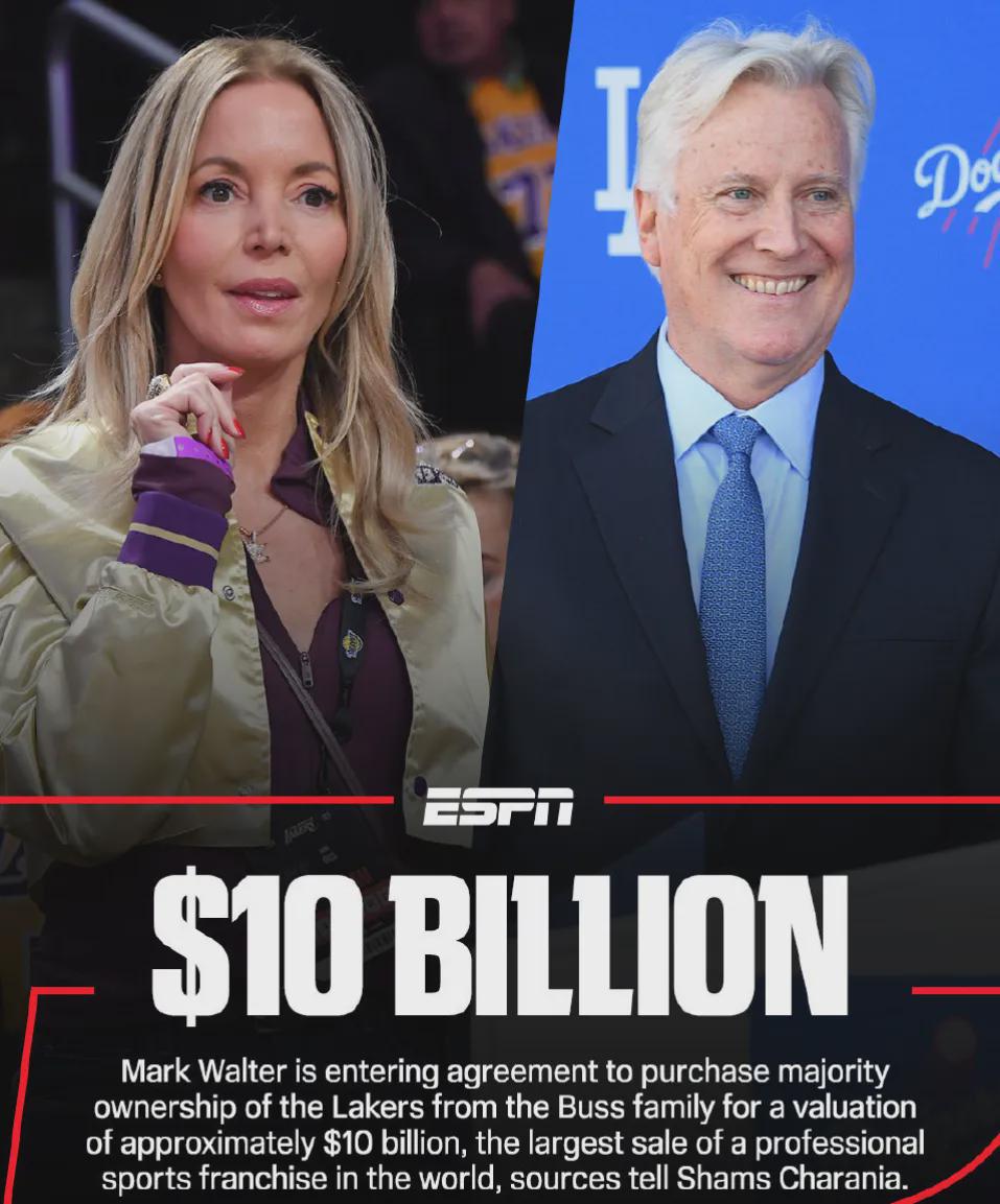 据报道,湖人的估值约为100亿美元,这创下了美国职业体育球队交易的最高纪录。