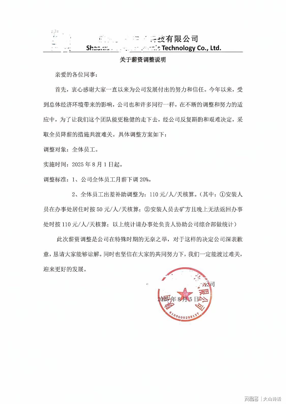 近日有广东网友爆料,2025年8月全员降薪20%,出差补贴也降了,再降下去,要跑路了哦!